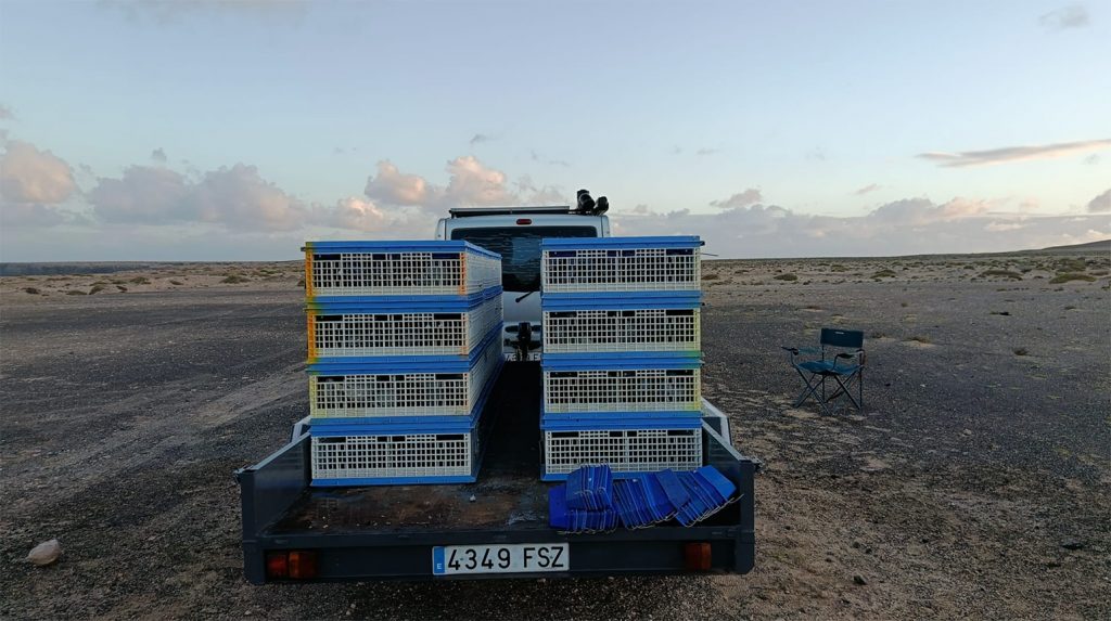 251 palomas encestadas a concurso tomaron rumbo a Fuerteventura el sábado día 9, para ser liberadas al día siguiente a las 08:00 horas.